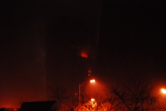 截至2月9日晚10:30許,央視新大樓北配樓外部火勢基本得到控制,但從大樓南側觀察,還能看到內部有若干樓層仍有火情。