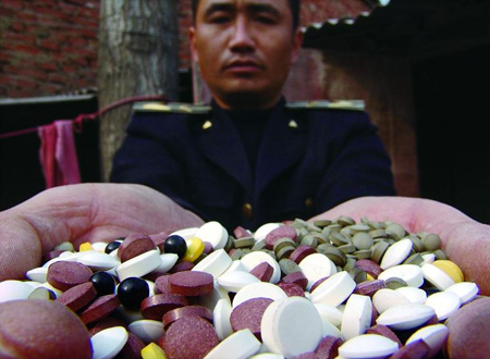村醫透露,他一般都是從縣市兩地的一些進貨商處拿貨。一開始的時候,還只是兩三種仿藥產品,進貨商特別強調這些產品都是公開招商的,有正規批準文號,利潤高且沒有副作用?!拔乙仓肋@些所謂正規批準文號,都是忽悠人的,因為很多人根本就不知道‘國藥準字’與‘國食健字’號有什么區別?!边@位村醫說,如果他拒絕進貨,進貨商就會警告將斷了他所有的貨源。如此下來,每次幾種,時間一長,柜臺里的仿藥產品就占了一半?!澳憧梢匀テ渌\所問問,都有這樣的經歷,有診所里賣的80%都是這些仿藥產品?!?