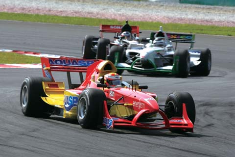 這是A1上海站賽后新聞發布會上的問題,很顯然,媒體的焦點仍然專注于A1與F1的比較。這不奇怪??纯催@一次上海站的車手,比較有名的像法國車手蒙塔尼、印度車手卡西基揚、馬來西亞車手熊龍都曾經是F1車手。中國車手程叢夫也被媒體宣傳為 “距離F1最近的中國車手之一”。在賽車世界里,人們總忍不住用F1來作參照物,而那些和F1扯不上關系的車手成了新聞挖掘中的弱勢群體。更有一種業內說法,A1是車手到GP2的跳板,GP2是到F1的跳板。說此話有證據,A1第一賽季讓法國隊揚威的小皮蓋特就是GP2和A1兩棲作戰,現在已經到F1揚眉吐氣去了。就連這次上海站奪魁的美國車手薩姆頓也一點不含糊,直言“當F1車手是自己踏上賽車之路的最初夢想”。