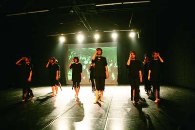 經濟觀察報 記者 陸曉茵 今年已經是文慧和吳文光的草場地工作坊第三年舉辦 ”五月節“了(草場地五月藝術展示),艾未未設計的灰墻院子里,快到午夜了還依然熱鬧。劇場里,王春蕾和她的同伴們正在展示他們的作品《翼·義》:漆黑的劇場里,3個黑衣演員出場并不斷向四周延伸,隨后,更多的黑影冒出來、直到舞臺整個被黑暗包圍,他們代表了黑暗;觀眾的面目一直被投影在舞臺背后的屏幕上,他們象征著光明。突然,”黑暗“停止了無序的蔓延,他們聚集起來,呈現了一段短暫而精彩的群舞。群舞之間,屏幕上出現一道魔幻的光芒,仿佛試圖掩蓋觀眾的面龐,而觀眾卻依然陶醉在群舞一剎那的光輝中,不知黑暗馬上就將把他們”吞噬“——群舞過后,”黑影 “們逐漸侵入到觀眾之中,一切光明頃刻消失。黑暗吞食了光明而帶來的寂靜之后,一道白光亮起,純潔無比的白衣小女孩從舞臺中心獲得了”重生“。