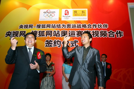 網絡版專稿 記者 朱沖 2008年6月24日,北京2008年奧運會官方互聯網/移動平臺轉播機構央視網,同北京2008年奧運會互聯網內容贊助商搜狐聯合宣布,搜狐公司正式成為央視網的奧運戰略合作伙伴,獲2008北京奧運賽事活動的互聯網轉播授權。這是中國最大門戶網站同中國權威的重點新聞網站的強強聯合,資源互補。當日,搜狐在門戶網站中率先公布了奧運會賽時報道方案,一場前所未有的“網上奧運會”即將拉開序幕。