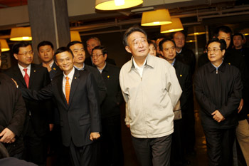 在阿里巴巴集團,吳邦國為他們對中國電子商務發展以及中小企業利用互聯網抗危機、求生存的做法所深深吸引,考察了1個多小時。他連連向董事局主席馬云發問,深入了解企業、個人電子商務和“支付寶”的商業運作模式以及電子商務誠信體系建設情況。當馬云介紹公司與建設銀行合作,采取網絡聯保方式解決小企業“貸款難”,7個月內為中小企業發放貸款突破13億時,吳邦國說:“小企業‘貸款難’,難就難在沒有抵押物和擔保,如果能通過創新解決這個問題,對經濟早日走出困境有積極意義。希望你們繼續探索?!?/FONT>