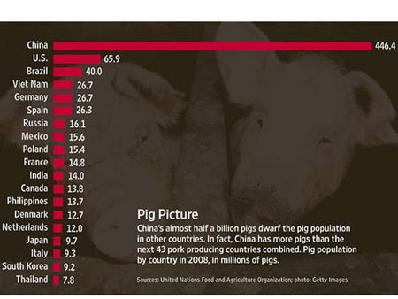 5.中國生豬的數量比43個豬肉生產國的總數還多。