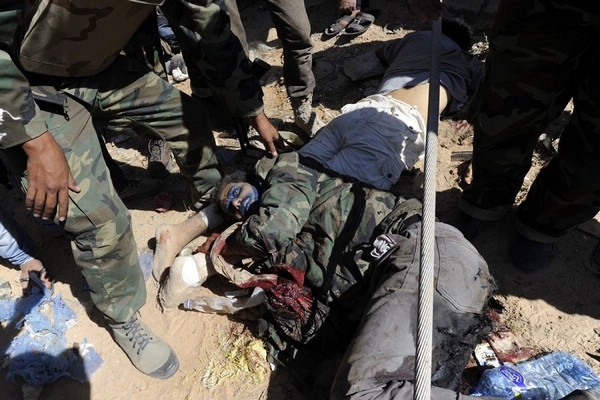 2011年10月20日,在利比亞的黎波里,人們在聽聞卡扎菲身亡消息后游行慶祝。利比亞“全國過渡委員會”執行委員會主席賈布里勒20日在新聞發布會上證實,卡扎菲當天在蘇爾特身亡。(圖/CFP)