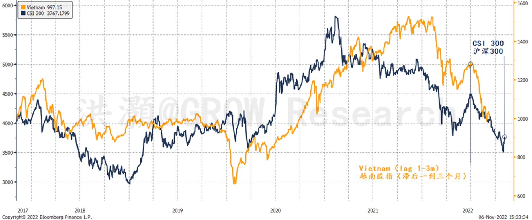 圖表3: 中國領先越南市場可達三個月,走勢類似。