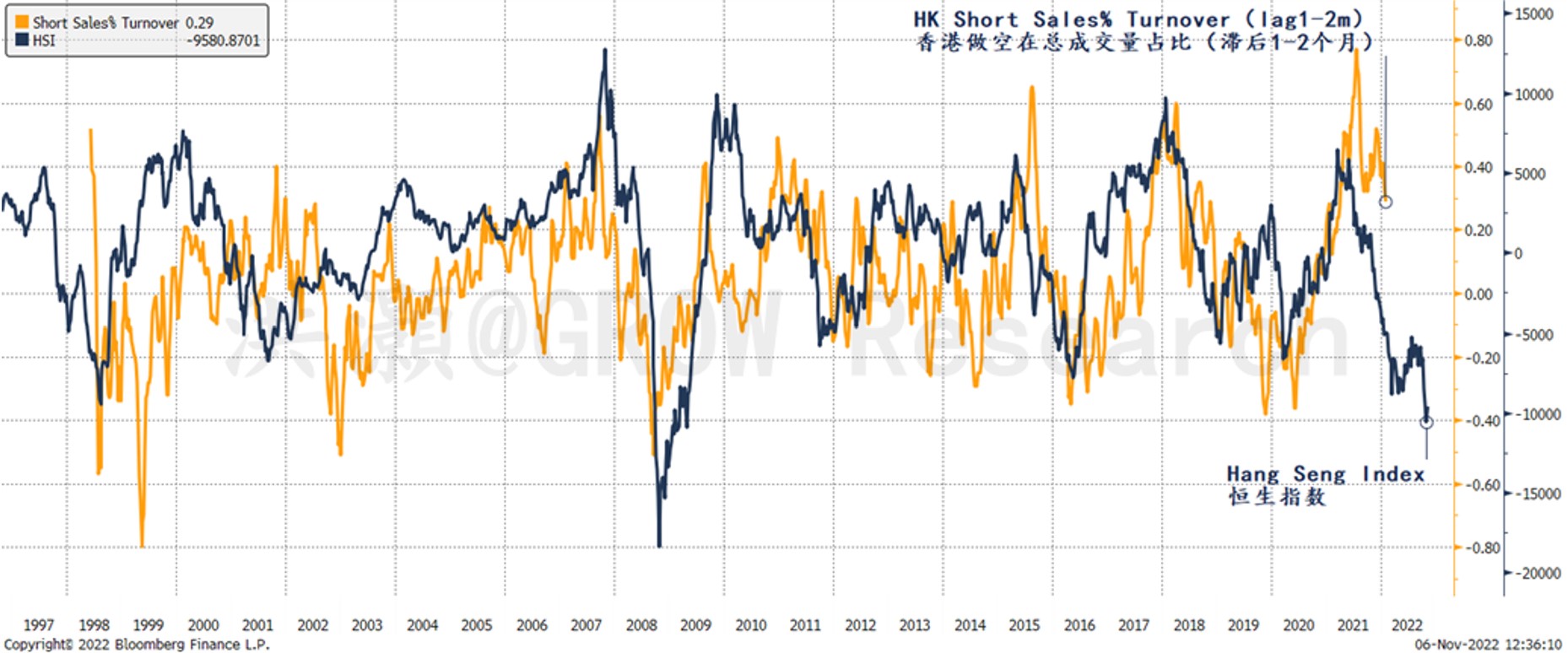 空頭回補往往較指數的運行滯后一到兩個月,因此應該有助于維持市場上漲勢頭。話雖如此,正如我們在2022年10月30日發表的題為《“Mai! Mai! Mai!”》的報告中所指出的,港股的大市成交量和做空交易均處于低位,表明市場正在艱難尋底的過程中。如是,盡管做空占比正從歷史高位開始減倉,但在成交量如此低迷的情況下,空平交易還能維持多久尚有待觀察。以史為鑒,HIBOR的飆升預示著波動率即將尾隨而至(圖表1)。如是,這極有可能是拜美國市場的風高浪急所賜。