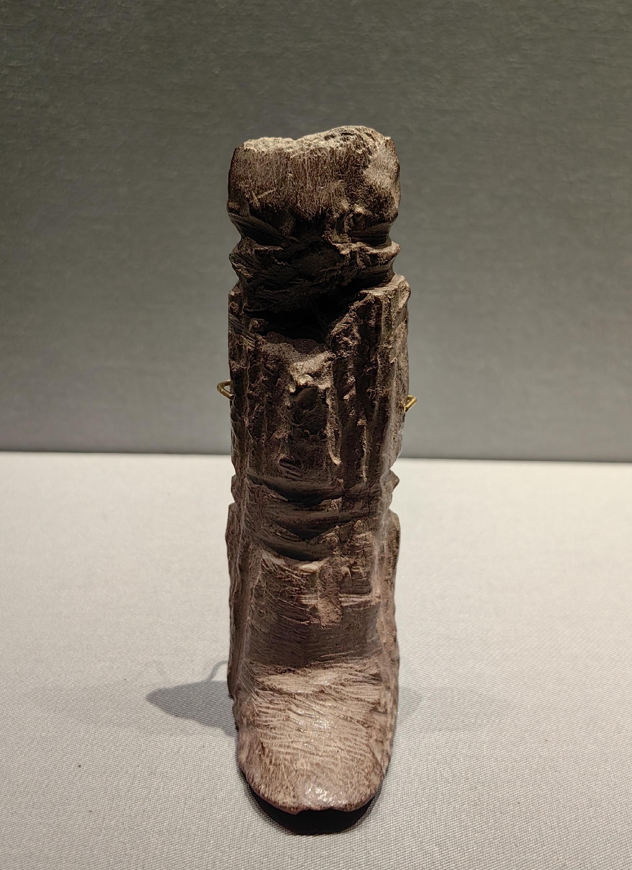 遺址中出土的木質紡輪與陶質紡輪,配合同出的骨針(最細孔徑僅1毫米),揭示了紡織技術的成熟度。葛布殘片經鑒定每平方厘米有經緯線各16根。漆工藝的突破更為驚人,朱漆木碗的發現將中國漆器史提前至7000年前。