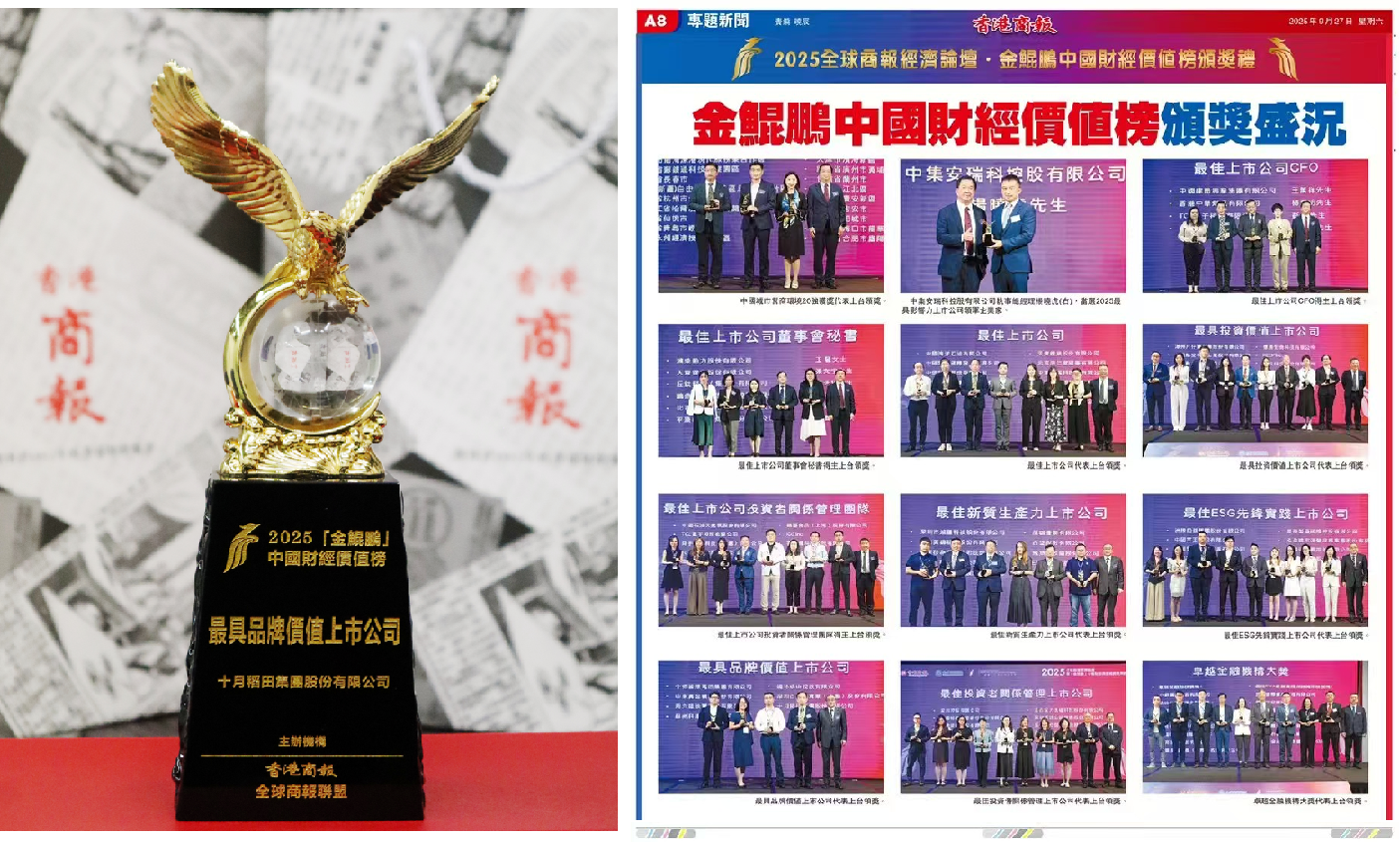 2025年9月26日,由香港商報與全球商報聯盟聯合主辦的「2025全球商報經濟論壇暨『金鯤鵬』中國財經價值榜頒獎盛典」圓滿舉辦,家庭食品創新品牌十月稻田(09676.HK)憑借卓越的綜合實力與增長潛力上榜,斬獲「最具品牌價值上市公司」獎。這一榮譽不僅反映了資本市場對十月稻田品牌價值的高度認可,也凸顯了其在家庭食品領域的競爭優勢。