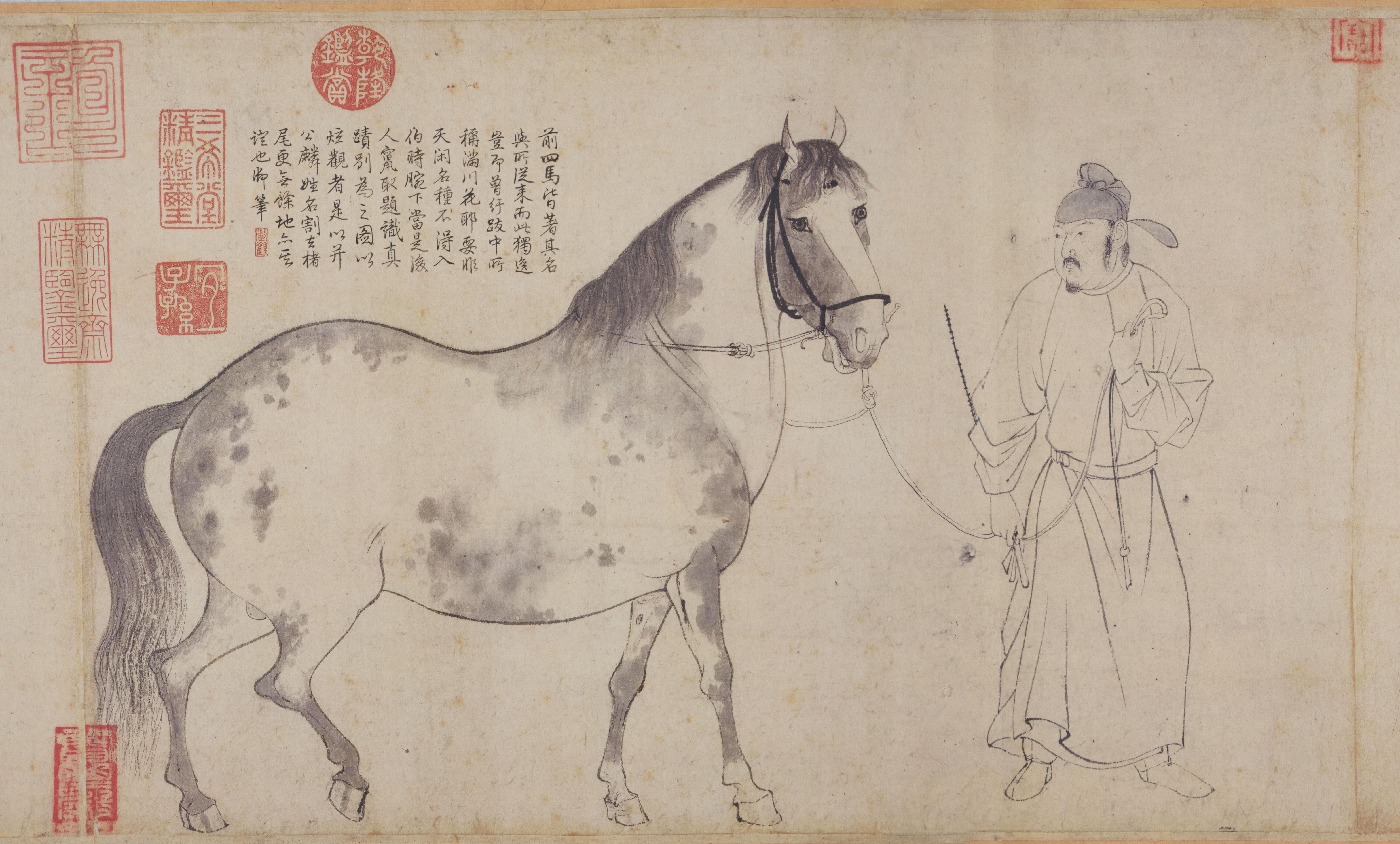文博時空 作者 朱紫璇 北宋元祐年間,于闐向朝廷進貢了一匹名喚“滿川花”的駿馬,神駿非凡,被收入御馬苑。畫家李公麟聽聞后,特意前去連日細心觀察,并以水墨白描將其繪入《五馬圖》中??烧l也沒料到,畫卷剛成,滿川花竟猝然倒地,沒了氣息。李公麟的好友黃庭堅直言:“異哉,伯時貌天廄滿川花,放筆而馬殂矣?!边@一“畫殺滿川花”事件在宋代文化圈廣為流傳,甚至導致馬夫惶恐不安,他們生怕李公麟再畫其他名馬,會將其魂魄也“并為神物取去”,紛紛懇求他不要再畫了。