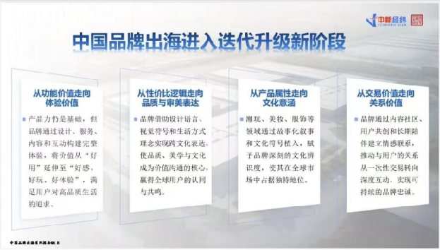 《報告》認為,在全球產業鏈深度調整、技術周期快速演進以及國際消費結構持續變化的背景下,中國品牌出海已從早期以“規模擴張”為主的階段,逐步邁入“結構優化與價值建設并行推進”的新階段。