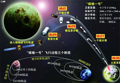 Source: ICFirst Journey To MoonIssue No. 339, Cover photoChina successfully launched its first moon probe on the evening of October 24th from the Xichang Satellite Lanch Center in Sichuan province. Pictured is a breakdown of its travel orbit.