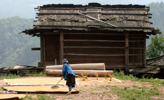 Grains, wooden houses and colourful minority costume make up the landscape of Miao villages.