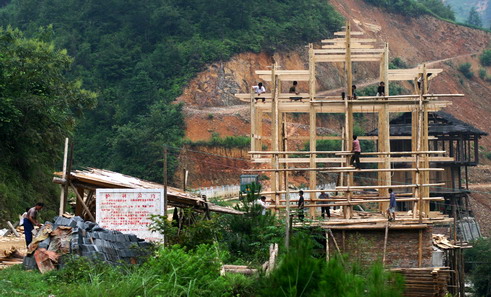 Wood and help from friends and relatives are all it takes for the Miao people to build a house.