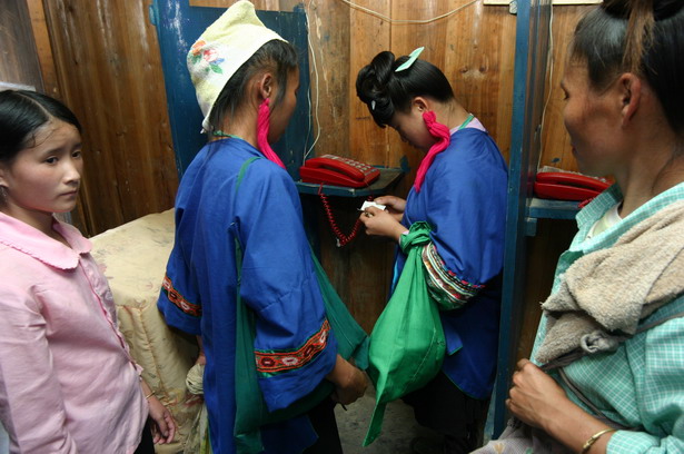 As more men leave home to work in cities, wives frequently visit pay phones downtown and queue to talk to their loved ones.