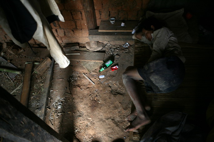 With large fields of poppy flowers thriving on the other side of border, opium has been a household medicine since late Qing dynasty. Despite two government-backed drug wars in the 1950s and 1960s which had virtually wiped out drug use in China, it re-emerged in the mid-1980s and became a symbol of success - like cars and western-style houses - for Longchuan locals. Official statistics suggested a total of 11,491 drug users made up the 170,000 residents in June, 2007.