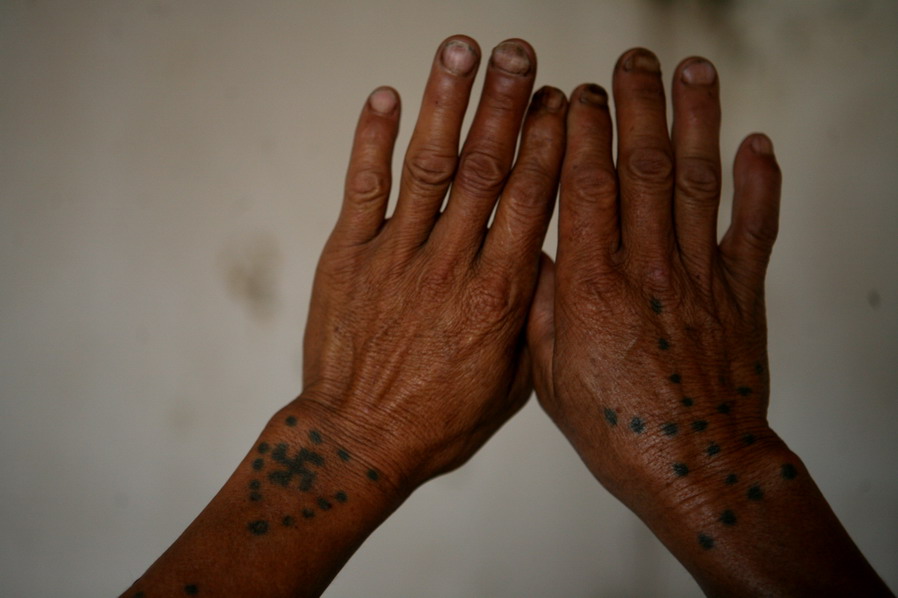 Unmarked tombs scatter the mountainside behind Mangbing village; buried there are local drug users who died from AIDS. Considered "unnatural deaths", they were denied burial in their family cemeteries, and the epitaphs have been left deliberately blank.