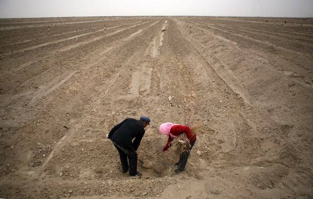 Every spring, Minqin people planted and irrigated trees by hand, hoping to resist the invasion of sand.