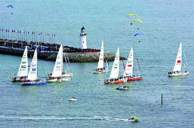 In order to allow more people to enjoy the Olympic yachting competitions up-close, Qingdao local government has converted stretches of sea bank into a spectator platform. After the Games, the platform- which extends into the sea - would be renovated into a coastal pub and bars street.