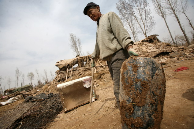 Nearly a month after flows in the Yellow River burst its bank, villagers living around the Hangjinqi section of the water course near Erdos city, Inner Mongolia, were still struggling to rebuild their homes.