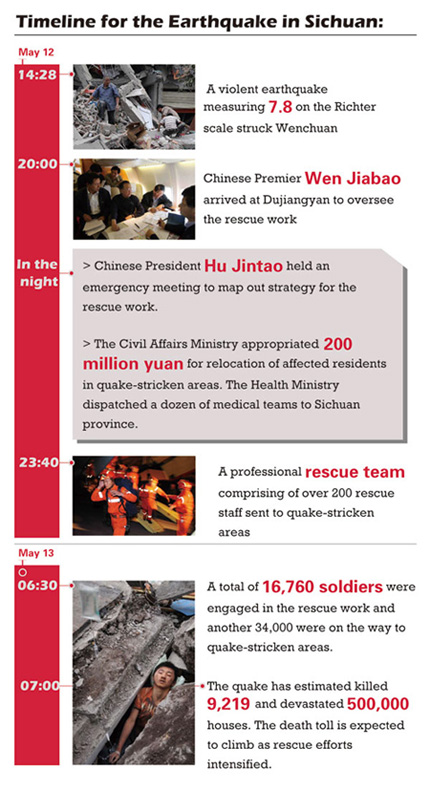 The clock was ticking. In Dujiangyan, everyone was racing against time, sharing the pain and anxiety that must have been felt by those still trapped under piles of debris.