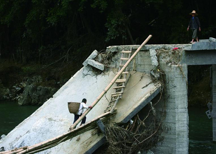 The only small bridge used to connect villagers to the outside world was damaged.