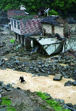 However, the situation here was better than that of Nabao Village, which stood on a hillside in Xintun Town, 60 kilometers away. There, the whole village was destroyed by debris flow and landslides. More than half of the houses had collapsed and 33 houses were swept away by the flood.