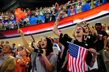 People of various nationalities gathered under one roof in Beijing's Wukesong Stadium to watch the much anticipated men's basketball match between China and the United states on Aug 10, the second day after the Beijing Olympic opened. China was defeated in the match with a final score of 70 against 101 for the US team. US President George Bush was among the cheering crowds in the stadium.