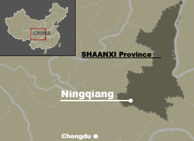 The Guangpingzhen Jinshanshi Village Center Primary School, Ningqiang county, Shaanxi province, has been reduced to a temporary structure.