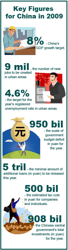 Wang Xiaohui: This year's budget deficit jumped by 770 billion yuan compared to last year. If we calculate on the basis that 2009 nominal GDP would grow by 8%, then the fiscal deficit would be 2.92% of GDP. In comparison, the US fiscal deficit for 2009 would take up 12.5% of its GDP. In other words, China's fiscal condition was still rather healthy. However, if the economy slows further, the government might even enlarge the scale of fiscal spending further.