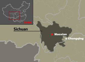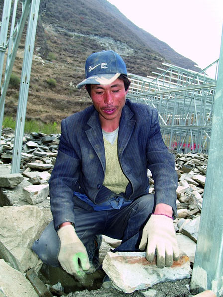 This is the resettlement site for Yangliu, located in Mao county, a region traditionally inhabited by the Qiang people. Though no one from the village was injured in the earthquake, 55 of the village's 72 families have moved to a new settlement site. Building the new settlement has become the top priority for the displaced families.