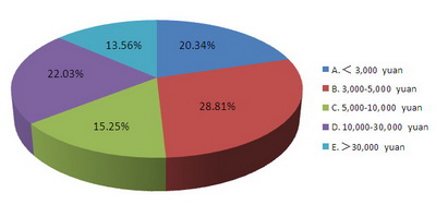 15 percent of those surveyed said that their monthly salary ranges from 5,000 to 10,000 yuan
