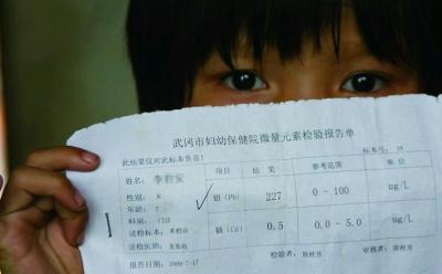 ~ In Fengxiang County in Shaanxi Province, lead levels in over 800 children exceed the standard and 100 children are suffering from lead poisoning.