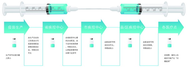 ~ Vaccines travel a dangerous journey as they are transported from producers to provincial disease prevention and control centers, then to similar agencies at city levels, then to counties and finally to patients.