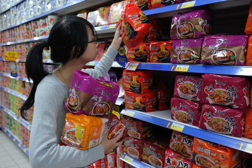 ~ Since 2007, suppliers have increased the price of instant noodles several times. Large chains, Carrefour especially, have generally refused to comply and offered as a buffer increased marketing efforts.