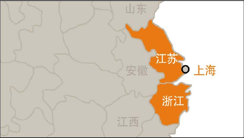 Zhejiang Province is planning to shift its core industries from traditional manufacturing to more high-tech enterprises, equipment manufacturing and service industries. Jiangsu has decided to revitalize 13 sectors including equipment manufacturing and new energy. At the same time, Shanghai is quickening the pace of its attempts to turn itself into an international finance hub.