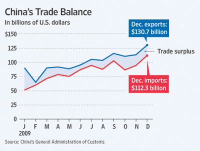Despite the huge jump in December's figures, the 2.2 trillion US dollars worth of combined imports and exports traded throughout the whole of 2009 was still down 13.9 percent on the amount traded the previous year and only slightly higher that the amount traded throughout 2007.