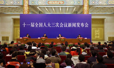 Representatives of China's top legislature held a press conference on Thursday morning to introduce the agenda for the 3rd full session of the 11th National People's Congress, which opened this morning (Mar 5) at 9am in Beijing.