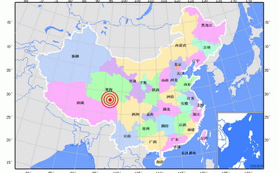 The epicenter (37.6N, 95.8E) was located about 240 km north-west of Qamdo, Tibet and 375 km south-east of Golmud, Qinghai province.