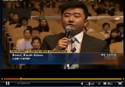 Rui: The shyness is a part of Eastern Culture; the other reason is the press conference was conducted in English, the president was a western president, and it was home court advantage to the west. Many journalists were really there for the show. I've attended four of Obama's G20 press conferences, and a lot of journalists were there to stargaze, not to ask serious questions. Especially in London, all the journalists applauded when Obama came along; it was very unprofessional. In Korea, a journalist was shooting the video on his own cell phone- that wasn't his job; they had a professional camera man. This is how fans behave, so it's no surprise that they did not ask any questions.