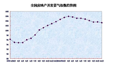 The national property development index (known as the national housing boom index) is 103.2, 0.37 points lower than that of October and 0.42 points higher than that of a year earlier.