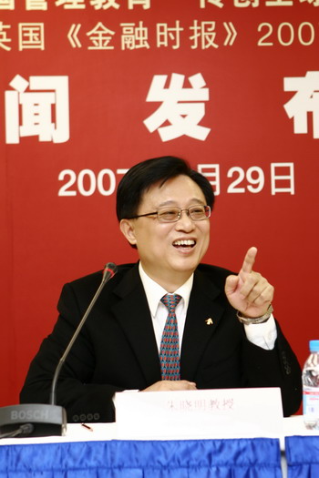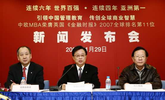 2007年1月29日,中歐國際工商學院院長朱曉明教授宣布,在當天出版的英國《金融時報》全球MBA百強排行榜中,中歐國際工商學院MBA課程名列第11位,比去年提高十位。