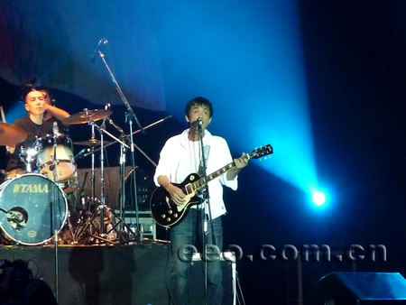 網絡版專稿 記者 馮娟 在人山人海的音樂廣場等待了近40分鐘樂隊的調音,試弦……