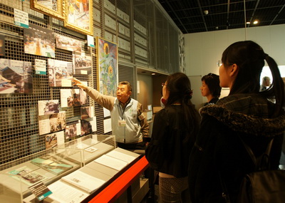 當中國的大學生們走進“人與防災未來中心”4樓的“1.17劇場”時,誰也不知道在這里將看到什么。劇場內只有幾道粗粗的鐵欄桿,人們站鐵欄桿的內側,面對著巨大的銀幕。突然劇場內的燈滅了,眼前出現的是一幕幕令人驚恐的地震發生時場面。巨大的樓房瞬間倒塌,高架橋突然斷成了兩截,大巴士的車頭懸在空中,熊熊大火在燃燒……令人驚心動魄的畫面持續了7分多鐘。