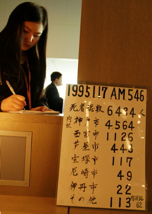 家鄉四川重慶的黃灝同學正在記錄神戶大地震死亡人數