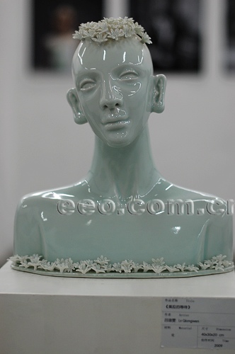 2009年呂瓊雯創作的以莫拉為名的人像施以無光藍釉,盡可能突出雕塑造型的完整性。采用較為單純的造型語言,意在使雕塑的面部表情能夠更好地傳達內心感受。