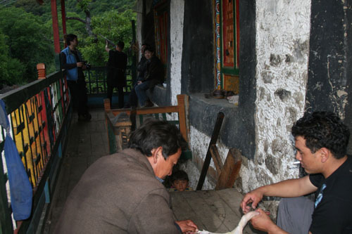 雞最后是抓到了,不過不是用槍打的,而是藏族背夫貢嘎手擒的。貢嘎來到老蘇呆著的二樓陽臺,一手緊緊抓著雞腳,一手抓著雞脖子,貢嘎背著老蘇坐了一小會兒,就手拎著軟踏踏的雞下樓了。原來,他坐在那兒的一會兒功夫是用手來掐死雞的。