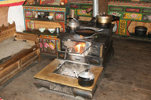 幫我們渡江的一個卷頭發的小伙子跑出去了,一會兒,他和另外一個人抬著一大桶(相當于內地簡易生啤酒桶那么大)青稞酒進來了,所有的人都歡呼起來。