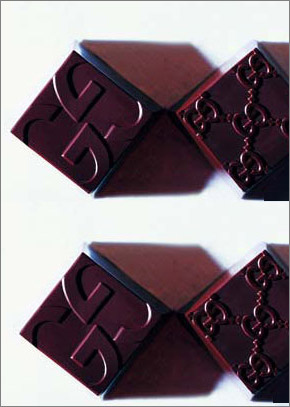 在米蘭著名的伊曼紐爾二世長廊內,四周林立著來自世界各地的超級名品店。開業于2006年的Gucci首家咖啡店頗引人注目.這里的鎮店之寶不是咖啡,而是用來搭配咖啡的Gucci巧克力。這些雙G“甜心”是特別邀請贏得多項世界大獎的國際點心大師Ernst Knam設計制作的,標準的立方體,飾有不同的雙G圖案造型,還有多種口味選擇。此外,巧克力的味道也會根據一天中時段的不同而略有所變化,上午的稍甜,下午則微苦。