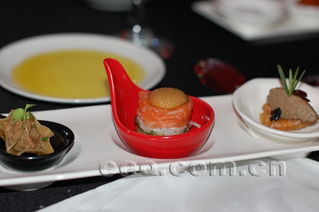 西瓜凍湯 焦糖鵝肝米撻 生蠔配青檸及八角