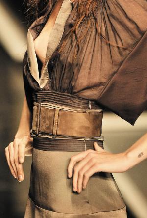 在溫暖的皮草下,來一件曲線玲瓏的輕薄印花裙或剪裁精致的一色裙,再配上美麗的珠寶,這個秋冬的PARTY主場,最美的女子就是你。同時,也別忘了系上一條深色寬腰帶,08年的女裝線條腰線部份有提高的趨勢,借由粗而且寬大的腰帶系在高腰位置,突顯出女性的修長曲線就是一大穿衣重點。